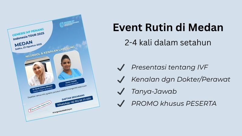 Medan adalah kota yg istimewa bagi Genesis IVF karena paling banyak pasien datang dari kota ini. Genesis IVF rutin mengadakan event di kota Medan presentasi/perkenalan kepada calon-calon pasien baru.